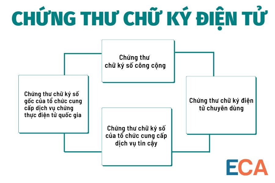 Như vậy, có 04 loại chứng thư chữ ký điện tử, gồm: Chứng thư chữ ký số gốc của tổ chức cung cấp dịch vụ chứng thực điện tử quốc gia, chứng thư chữ ký số của tổ chức cung cấp dịch vụ tin cậy, chứng thư chữ ký số công cộng và chứng thư chữ ký điện tử chuyên dùng.