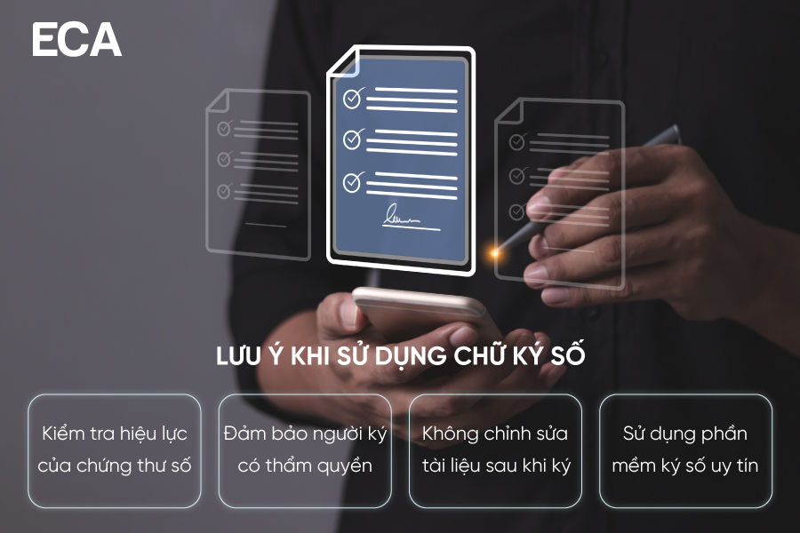 Việc sử dụng phần mềm ký số được chứng nhận, như chữ ký số ECA của Công ty Phát triển Công nghệ Thái Sơn, sẽ đảm bảo quá trình ký diễn ra đúng chuẩn, an toàn và dễ dàng xác minh. Các phần mềm chính thống còn cung cấp tính năng kiểm tra tình trạng chữ ký, hỗ trợ ký hàng loạt và lưu trữ tài liệu điện tử an toàn.