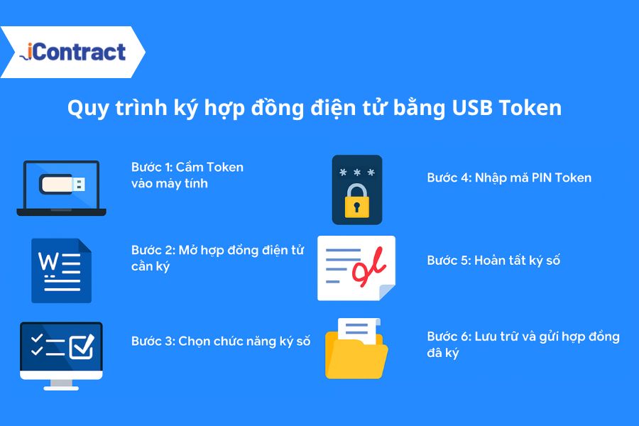 Một trong những phương thức ký phổ biến nhất hiện nay là ký hợp đồng điện tử bằng Token. Token (USB Token) là thiết bị lưu trữ chữ ký số, được cấp bởi các tổ chức chứng thực chữ ký số (CA) được Nhà nước cấp phép. Khi sử dụng Token để ký, doanh nghiệp và cá nhân đảm bảo được tính xác thực, toàn vẹn và chống chối bỏ của hợp đồng.